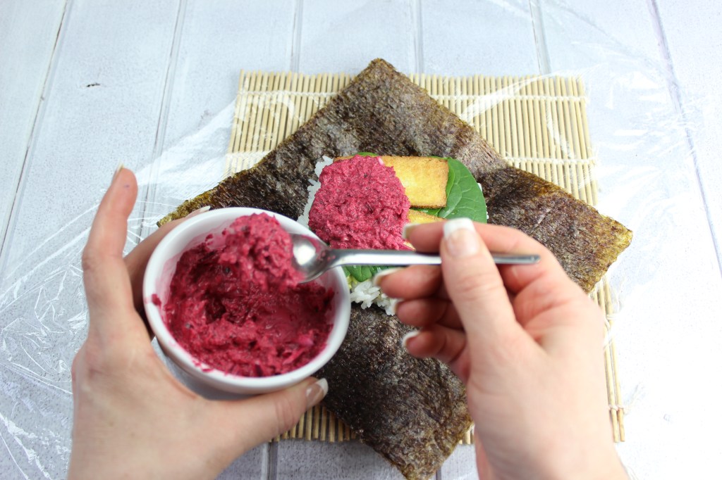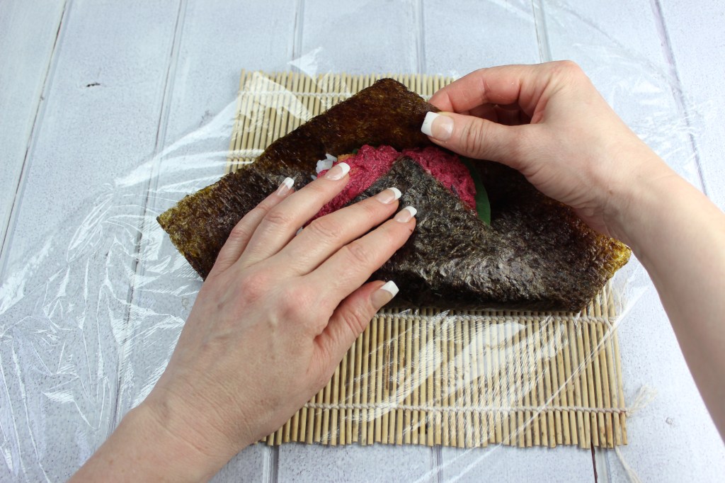 Je to velmi jednoduché a prakticky si tam může dát každý to co má rád, základ je řasa a rýže.