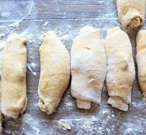- každý kousek si vyválej na tenkou obdelníkovou placku